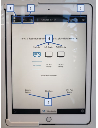 b. Left Display – This is located at the back of the room on the left side when facing the projector.